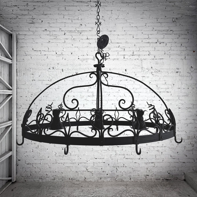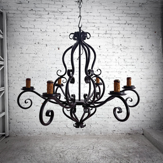 Spanish Colonial Dark Wrought Iron Chandelier