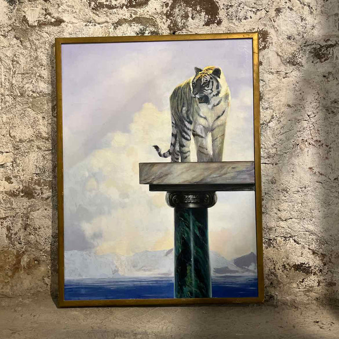 Unsigned Surrealist Tiger Oil Painting