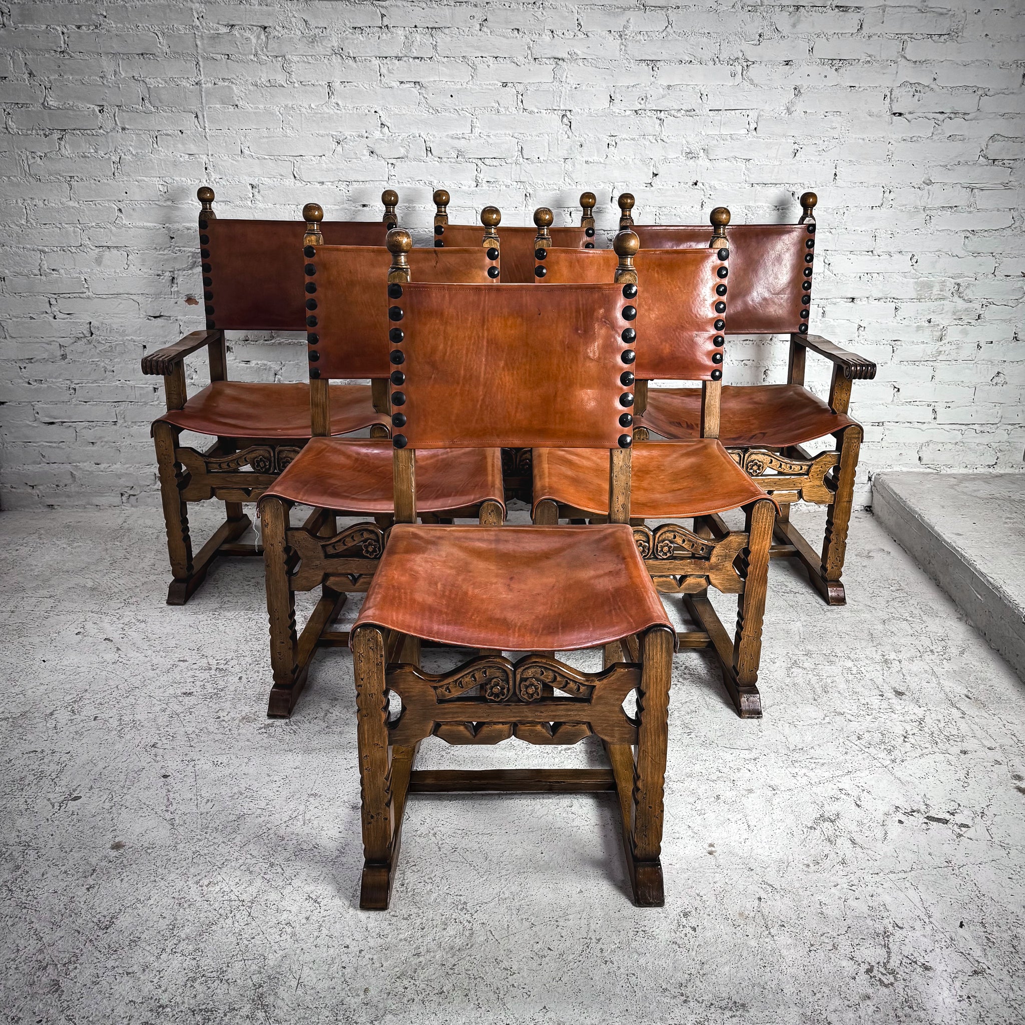 Set 6 Spanish Colonial Leather Armchair