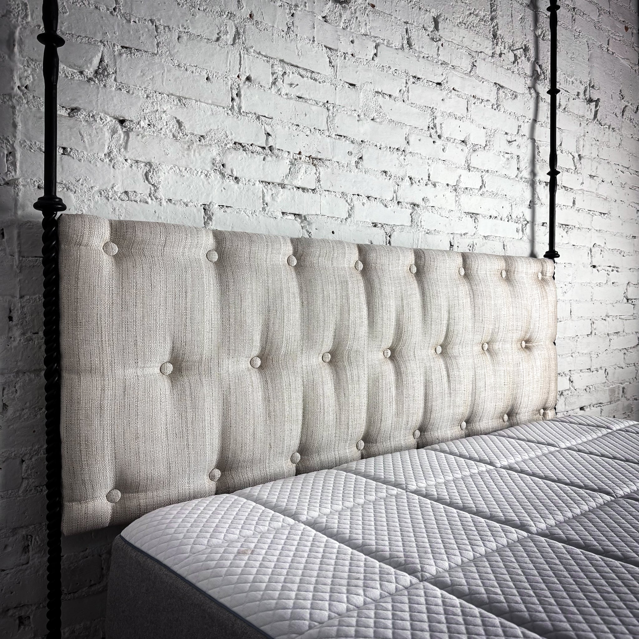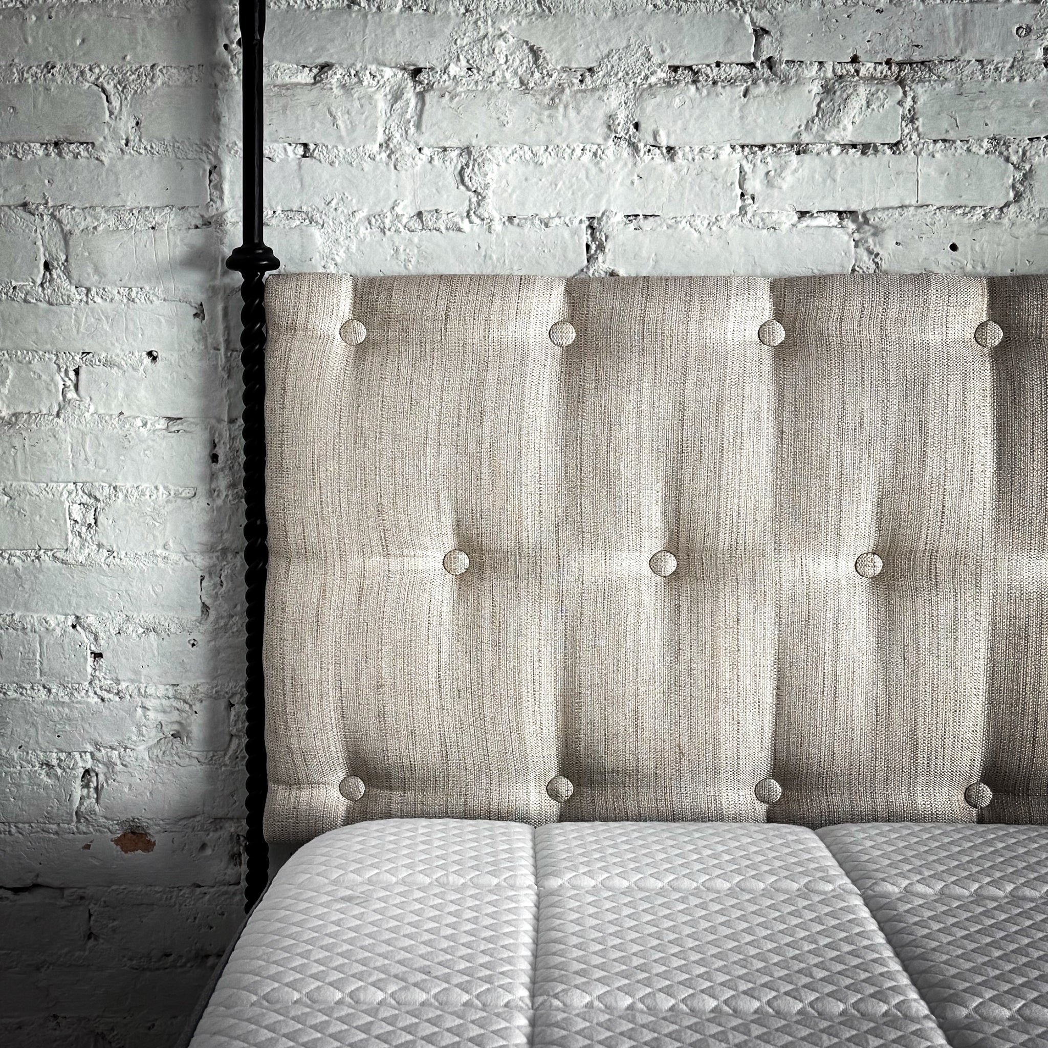 Evos Traditional Queen Ebonized Iron + Linen Bed