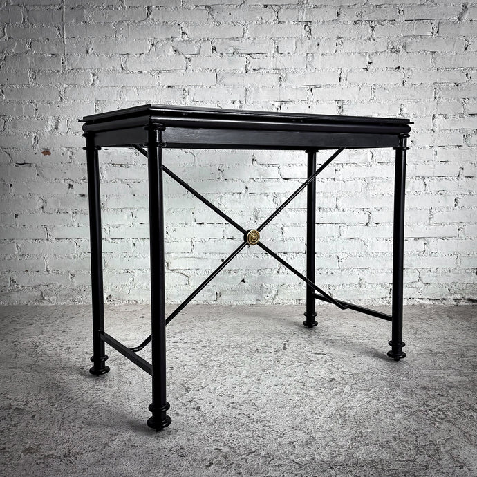 Evos Traditional Queen Ebonized Iron + Linen Bed
