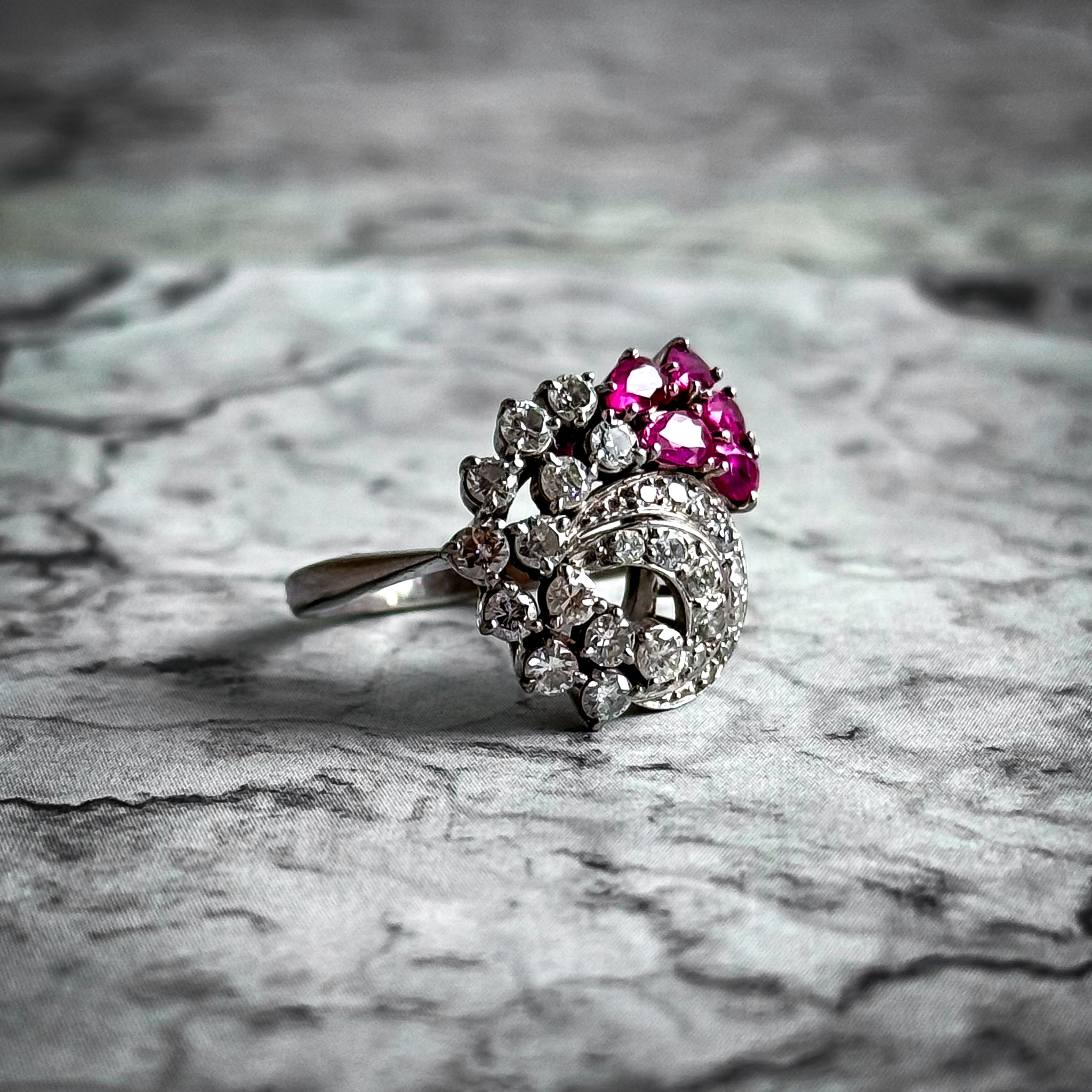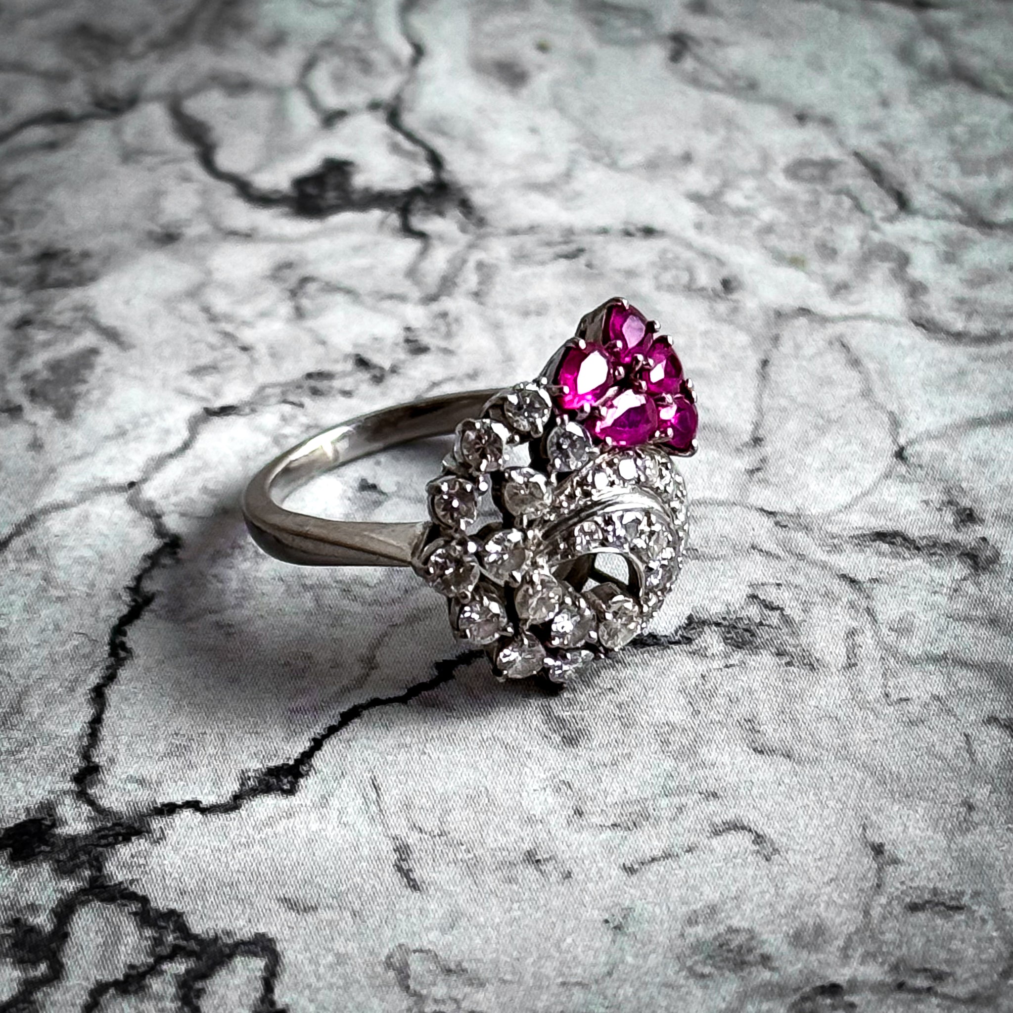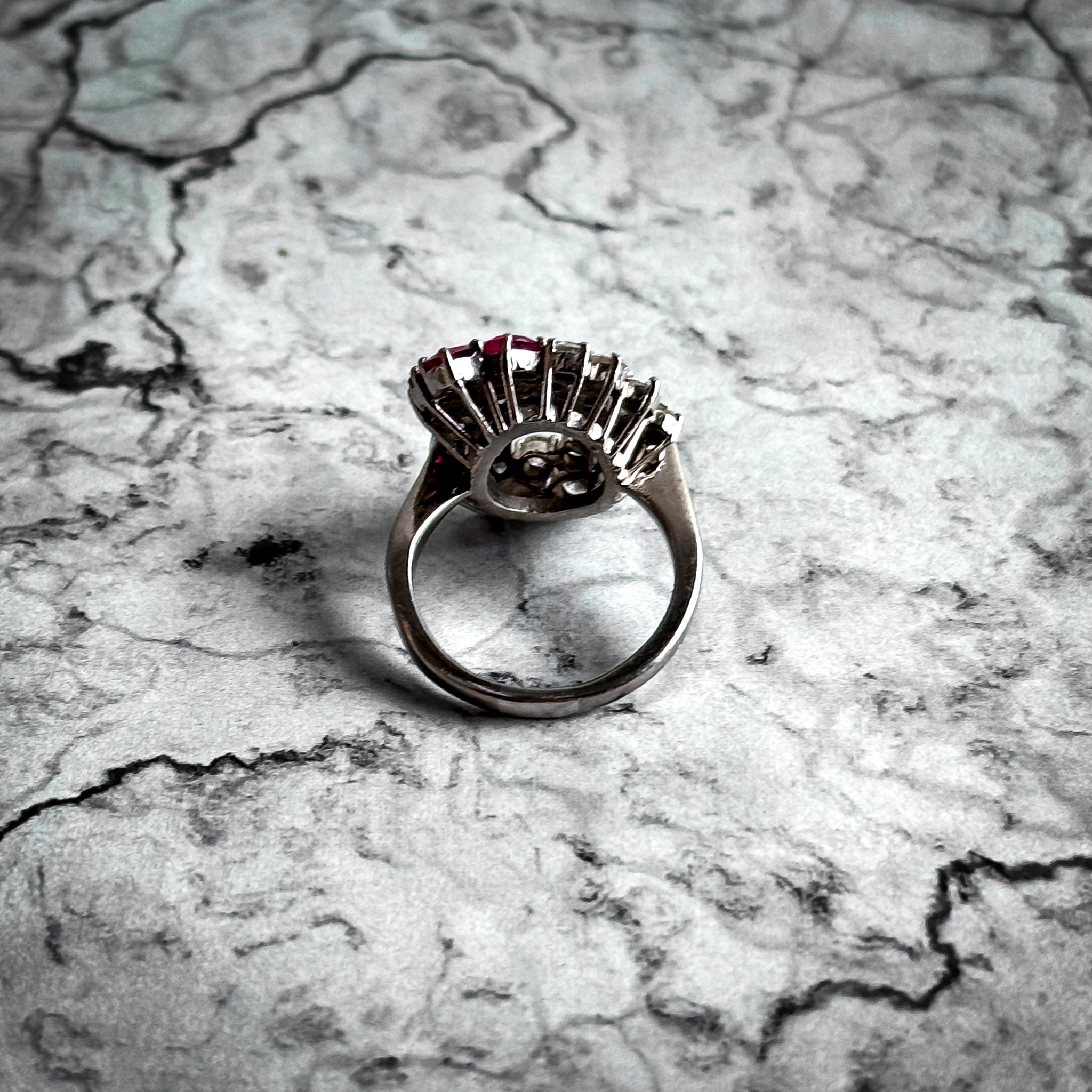 Vintage 14k White Gold Rubies & Diamonds Cocktail Ring