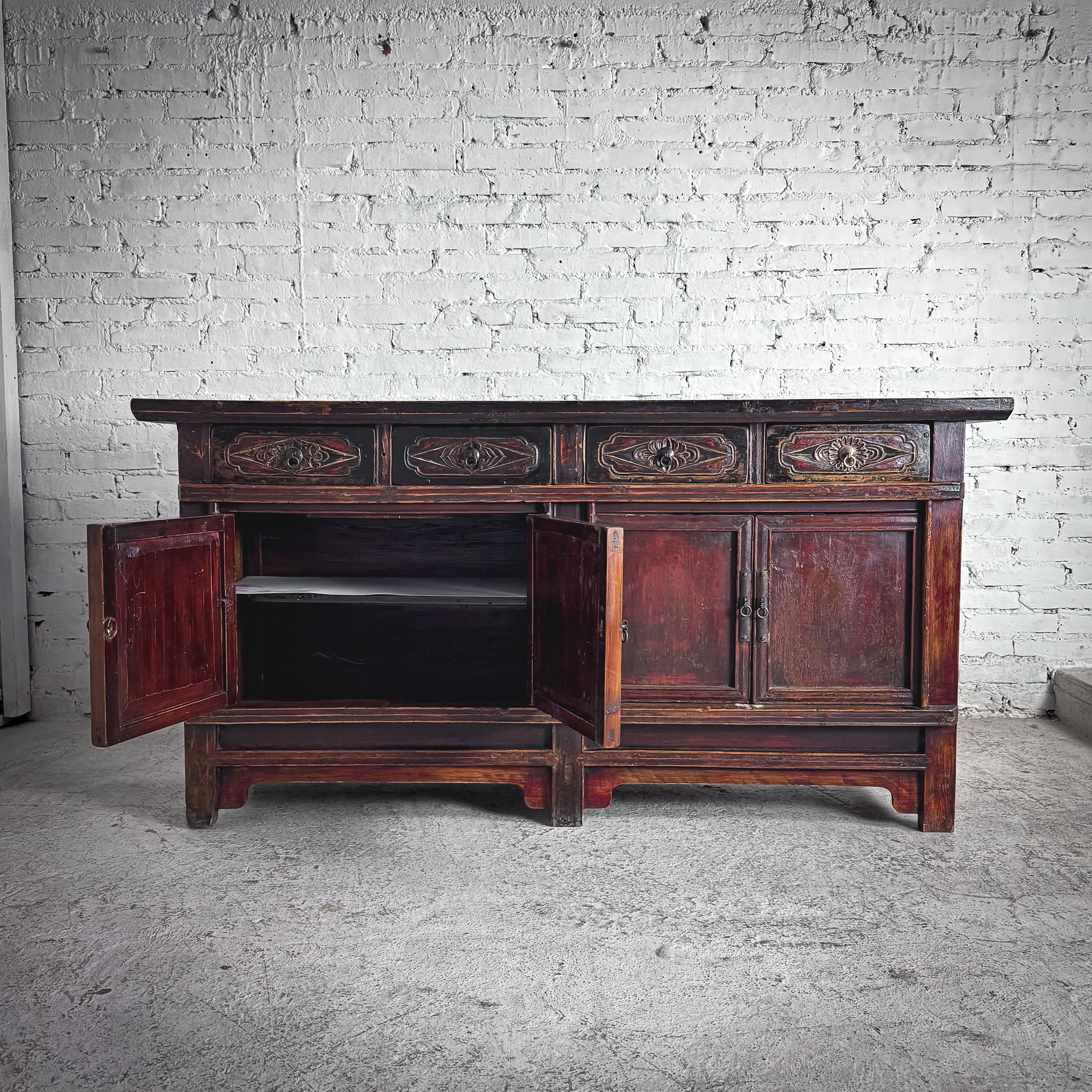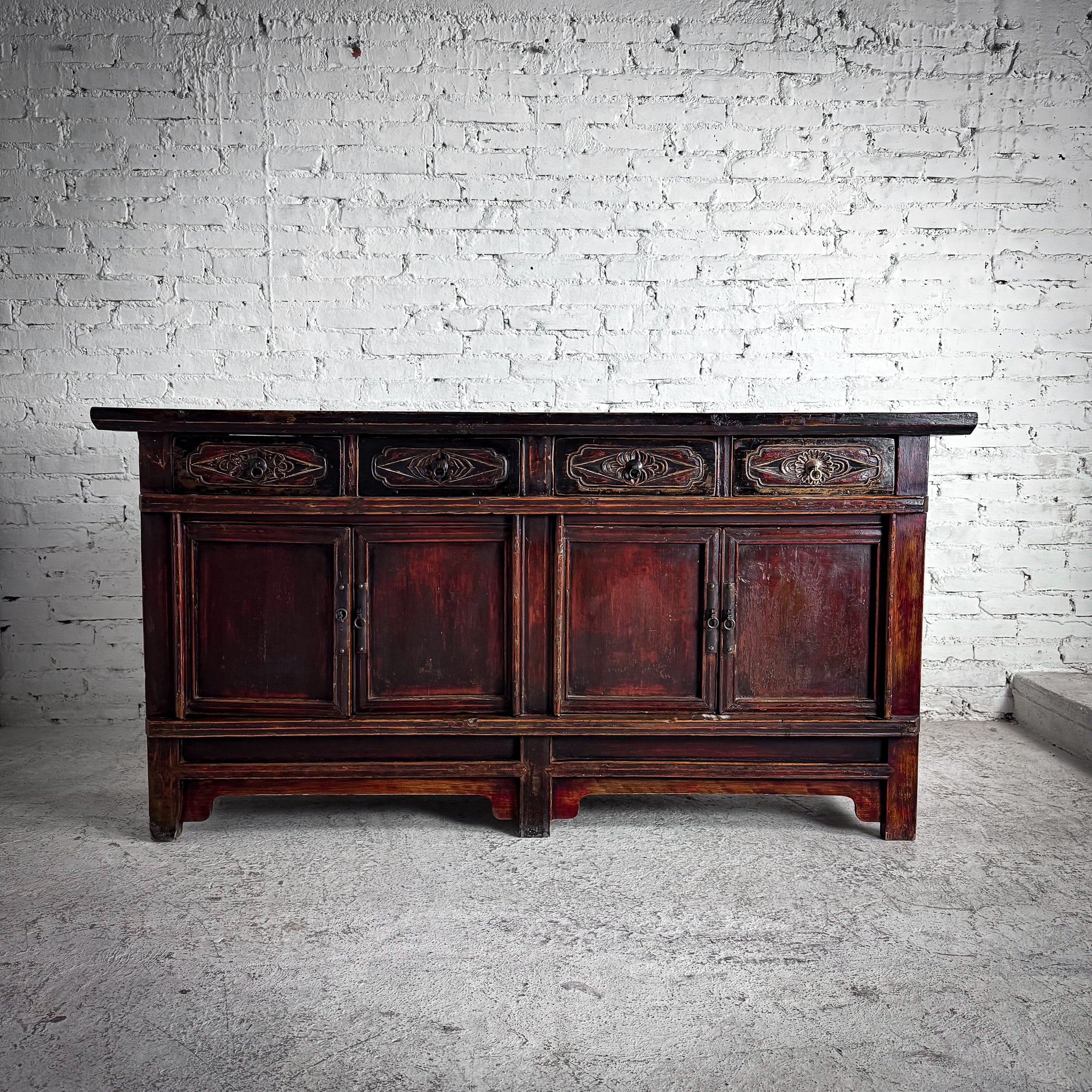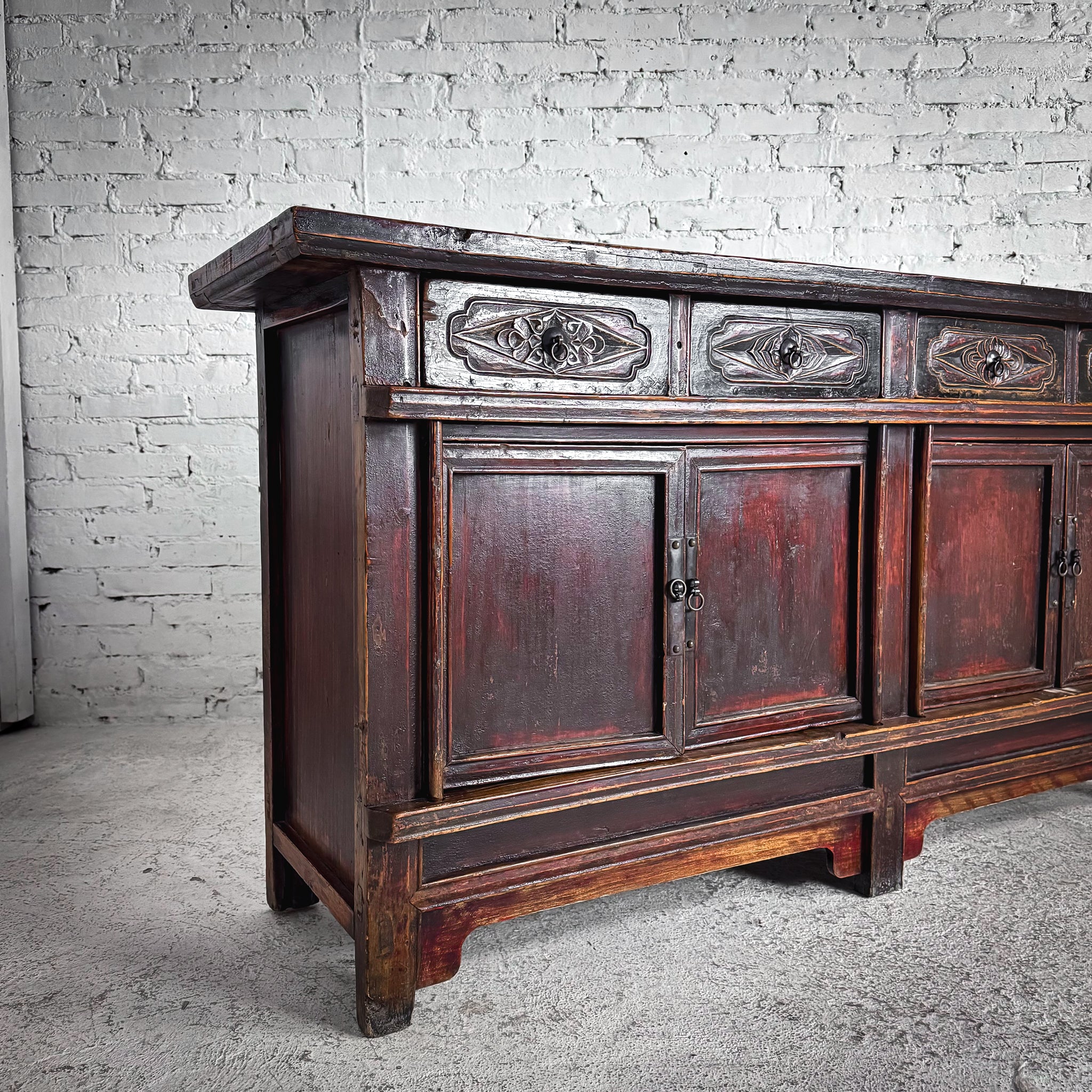 Antique Shanxi Qing Provincial Carved Elm Wood Sideboard