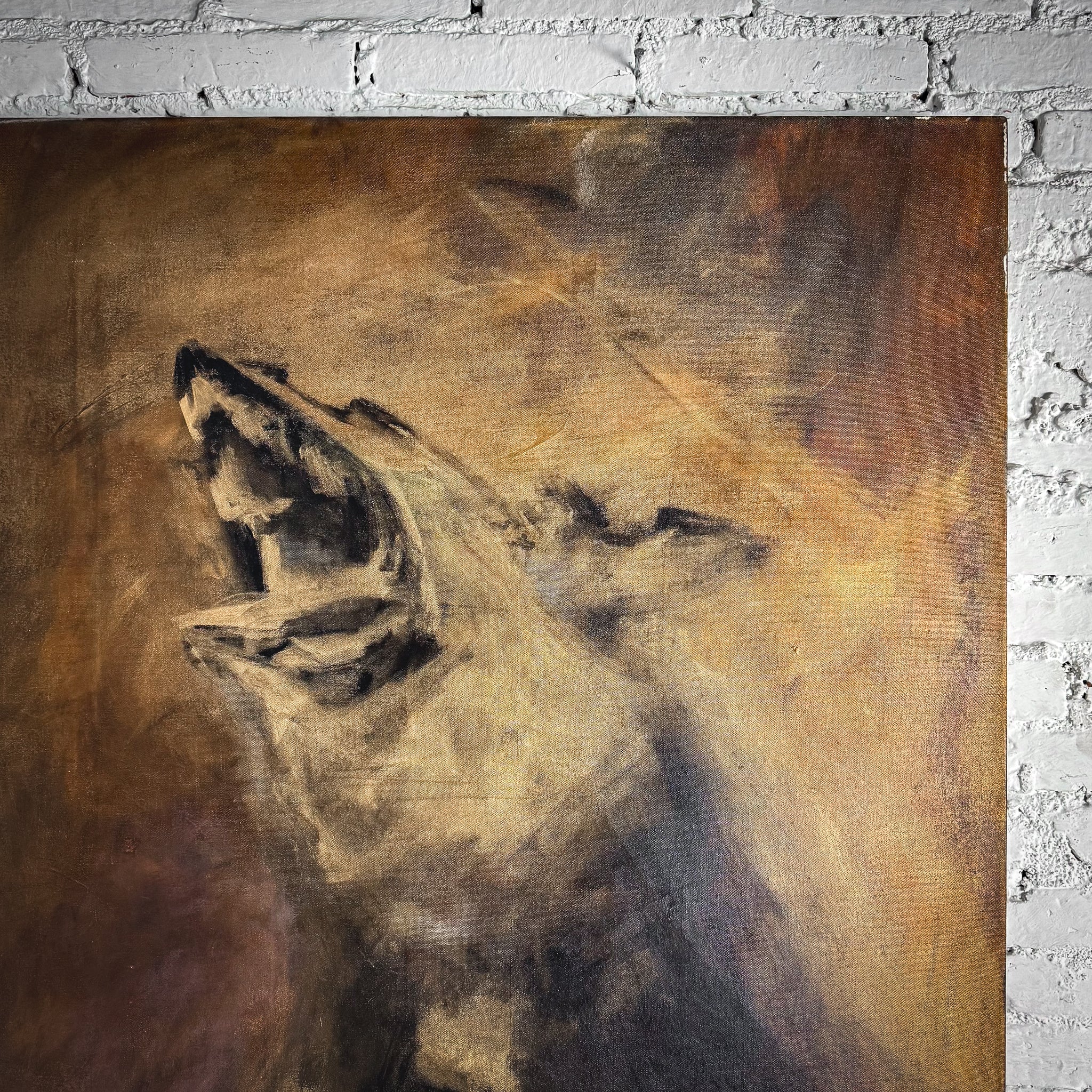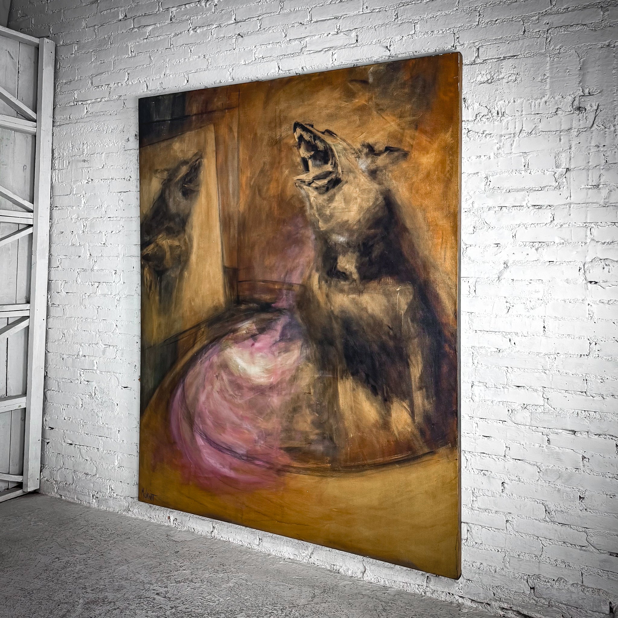 Painting. Margaret Dawit "Mirror and dog" figurative abstract oil on canvas painting. Signed by the artist. Not Framed.